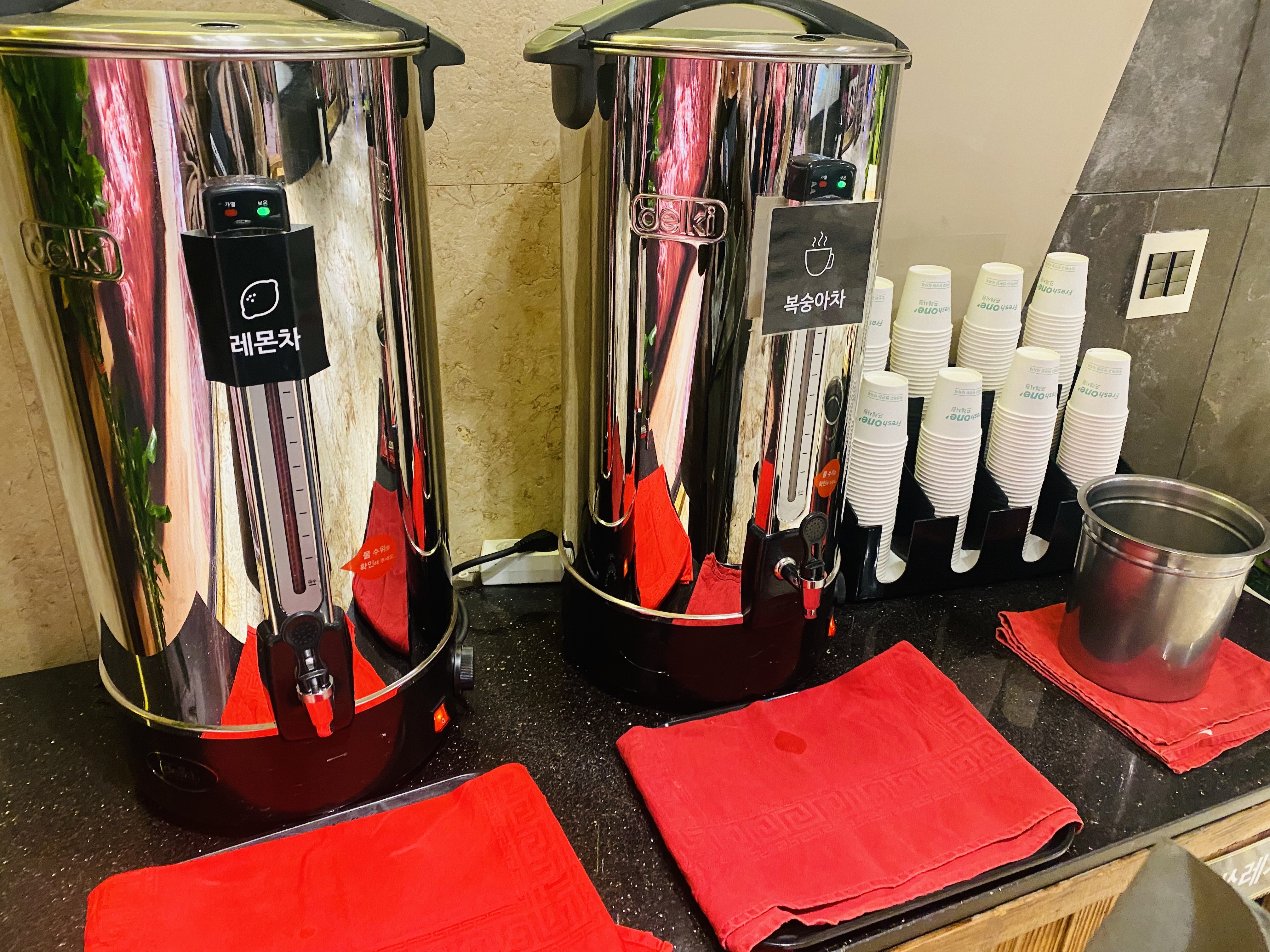 식사를 하고 나오면 레몬차와 복숭아차를 마실 수 있게 되어있는데 저희는 바로 같은 건물 옥상에 있는 옥탑방 카페를 가려고 먹지는 않았어요.