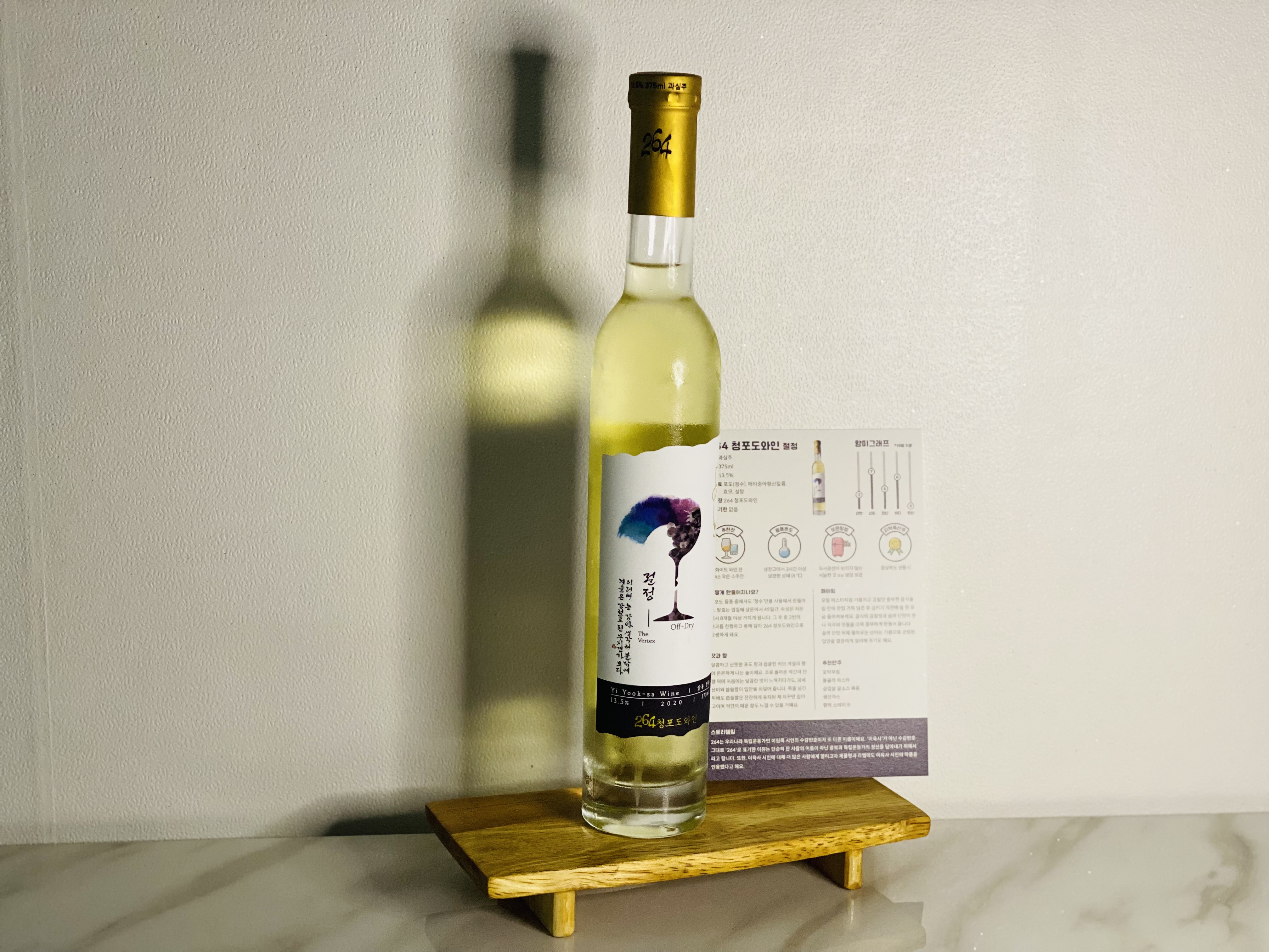청포도 품종 중에서도 '청수'만을 사용해서 만들어요. 발효는 껍질째 상온에서 45일간, 숙성은 저온에서 8개월 이상 거치게 됩니다. 그 후 총 2번의 여과를 진행하고 병에 담아 264 청포도와인으로 탄생하게 돼요.