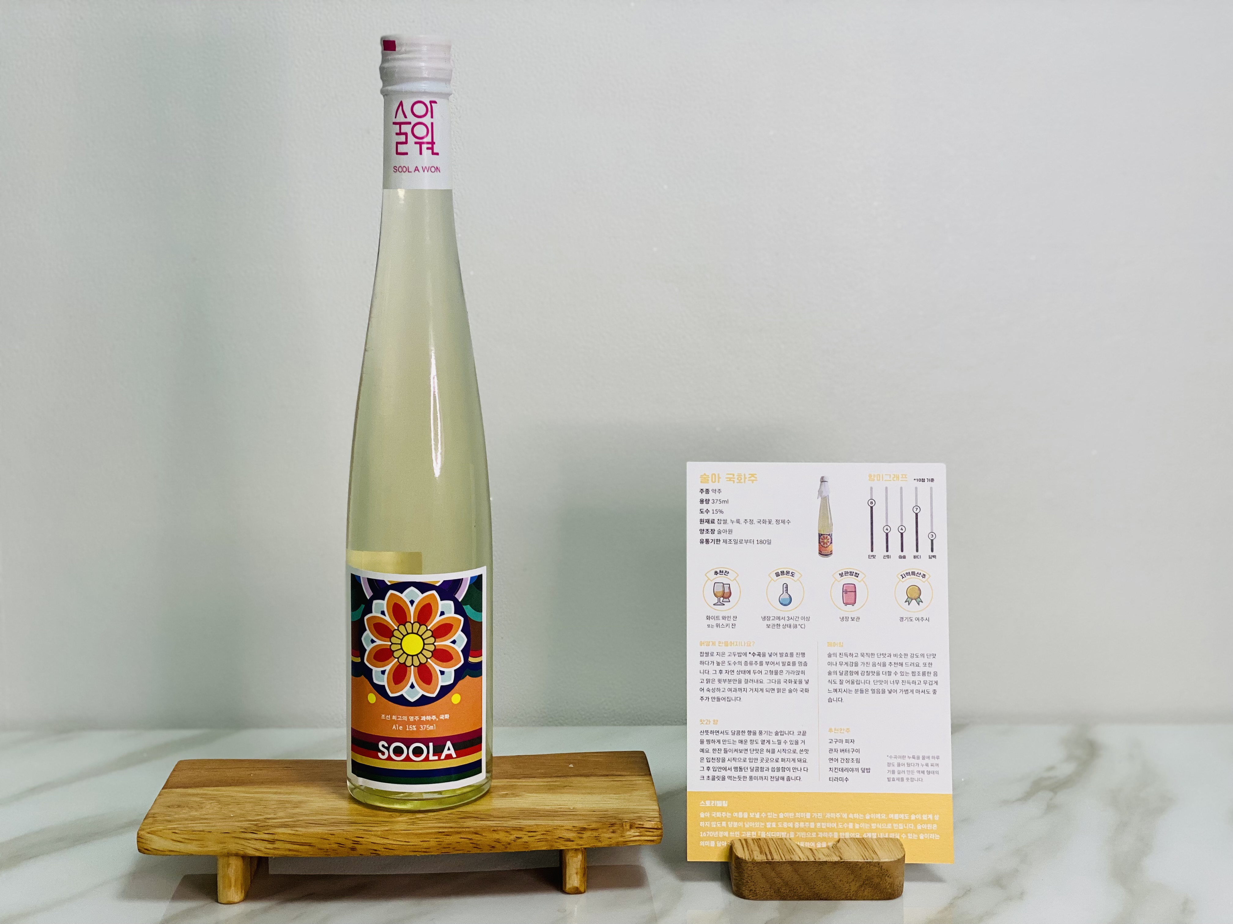 「술아 국화주」는 여름을 보낼 수 있는 술이란 의미를 가진 '과하주'에 속하는 술이에요.